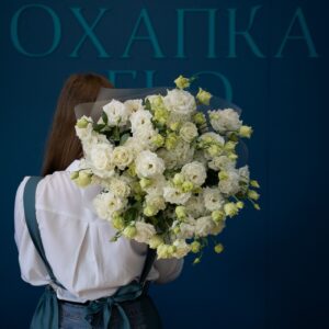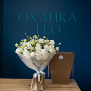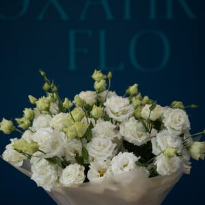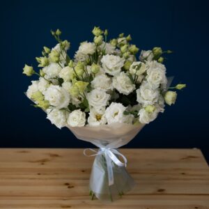 Возможность заказать букет из 15 белых эустом в одноразовой бумажной вазе, наполненной водой, и сумке-переноске. Быстрая доставка по городу.