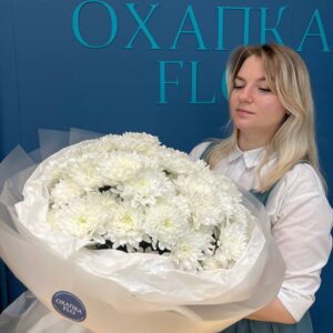 Возможность заказать Букет из хризантем белой 15 штук. Быстрая доставка по городу.Благодаря удобной сумке-переноске для цветов и одноразовой бумажной вазе с водой, букет станет отличным решением для любого мероприятия.