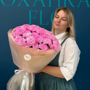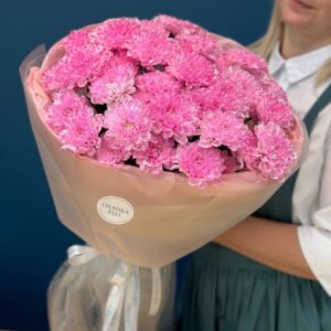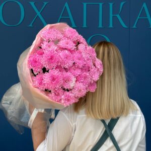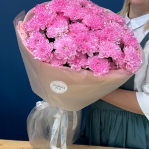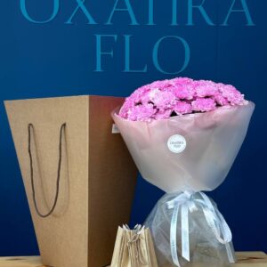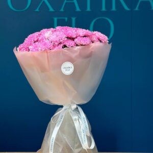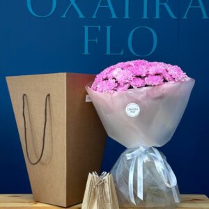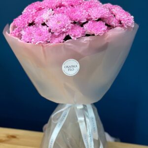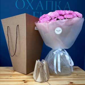 Букет из розовой кустовой хризантемой в аквабоксе и с сумкой переноской. Возможность заказать букет из хризантем кустовых розовых 7 штук. Быстрая доставка цветов по городу.