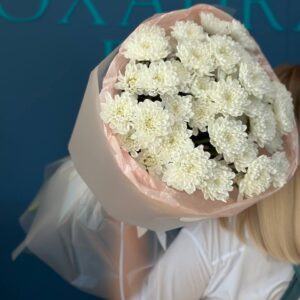 Возможность заказать букет из хризантем белых кустовых 7 штук. Быстрая доставка цветов по городу.
