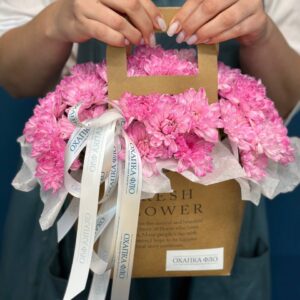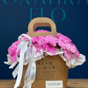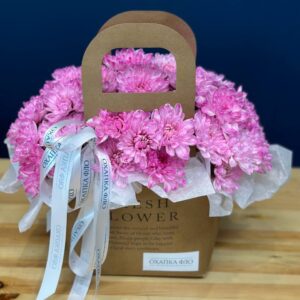 0 отзывов на Букет кустовых хризантем, в сумочке, розовых
