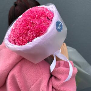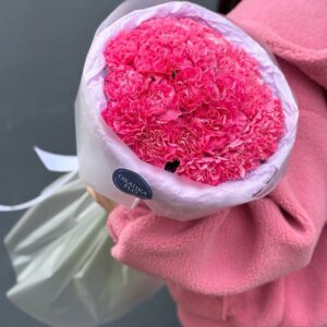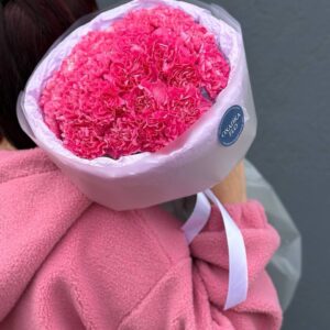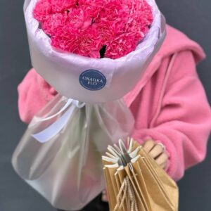 Возможность заказать букет из 25 розовых гвоздик. Быстрая доставка по городу.