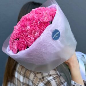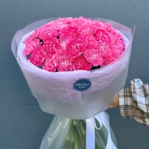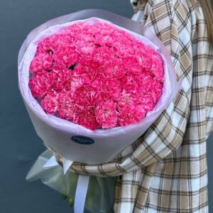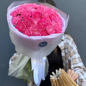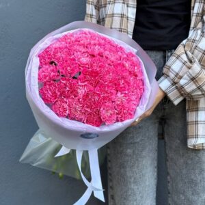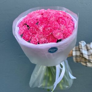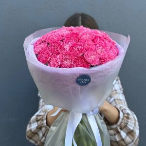 Возможность заказать букет из 25 розовых гвоздик. Быстрая доставка по городу.