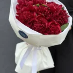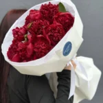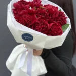 Возможность заказать букет из 9 красных пионов сорт ” Ред Шарм”. Быстрая доставка по городу.