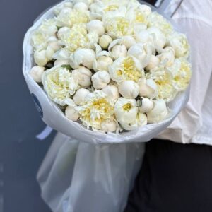 Букет пионов кремовых “Дюшес де Немур” 51 штук.