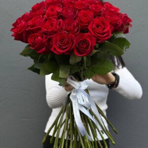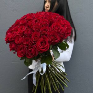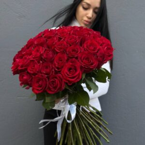Букет из 51 красной розы длина стебля 65-70 см — это идеальный подарок для любого случая. Красные розы символизируют любовь, страсть и восхищение.