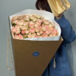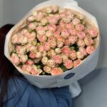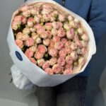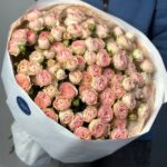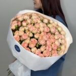 Возможность заказать букет из 25 нежно-розовых кустовых роз. Быстрая доставка по городу.