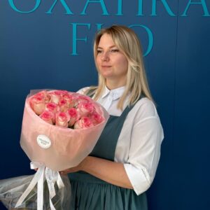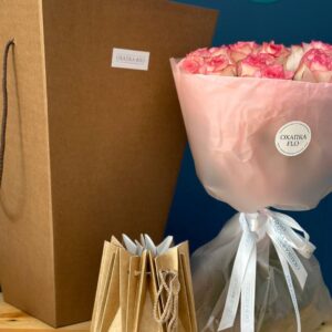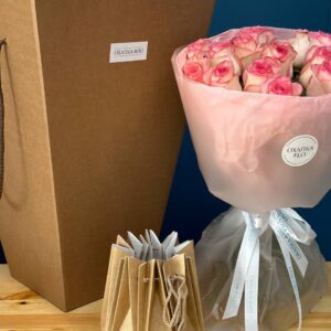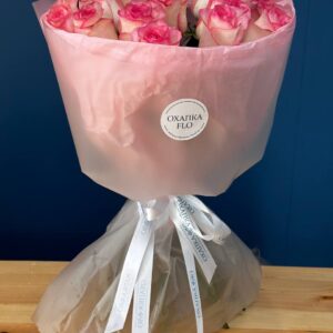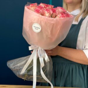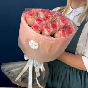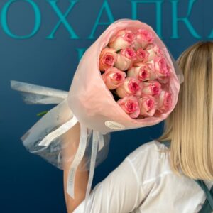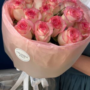 Возможность заказать букет роз бело-розовых 15 штук. Быстрая доставка цветов по городу.