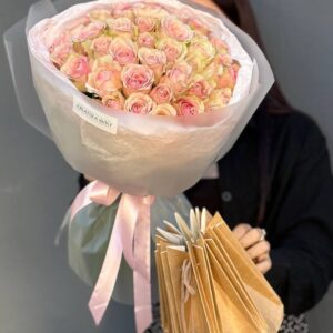 Возможность заказать букет из 41 розовой розы “Розовая симфония”. Быстрая доставка по городу.