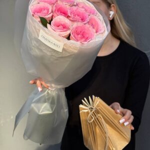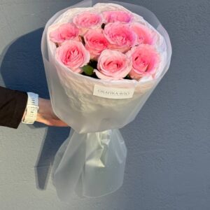 Возможность заказать букет из 9 розовых роз. Быстрая доставка по городу.