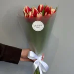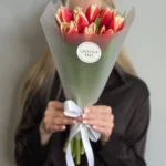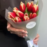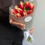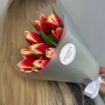 Возможность заказать букет красно-желтых тюльпанов. Быстрая доставка по городу.