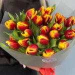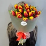 Возможность заказать букет красно-желтых тюльпанов. Быстрая доставка по городу.