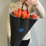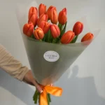 Монобукет из 15 оранжевых сортовых тюльпанов — это великолепное сочетание изысканности и нежности.